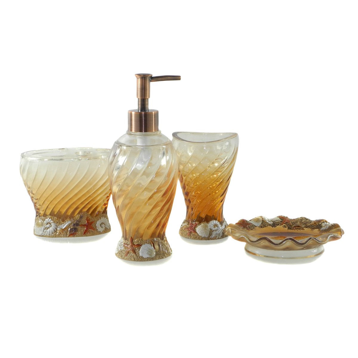 This bath ensemble is so beautiful, with Four piece bath accessory set, made out of resin to withstand everyday usage, created by artisans who specialize in a particular material or craft, each piece is produced in limited quantities to allow for traditional production methods, fine craftsmanship and meticulous finishing. We are particularly proud of the hand-painting process done by skilled painters, each with more than 13 years of experience, so each finished product is a unique work craft